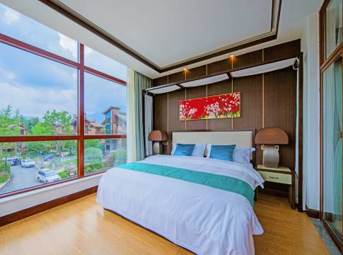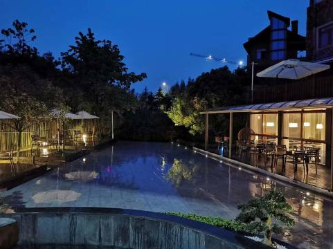 临水枕石听林声,半山景色映帘来。潺潺流水,静谧流深,推窗见绿意满径,山间万物皆有禅意流转。居于此,食于此,尘世喧嚣忘诸于脑后,生活刹那间获得返璞归真的简单。在此,酒店不再是匆匆驻足之地,而是心灵至真归处。洪雅七里坪新元素度假酒店,地处国家5A级旅游景区、世界文化与自然双重遗产——峨眉山,位于半山七里坪处,海拔1200米,气候清爽宜人,百草丰茂葱郁,云蒸霞蔚可洗涤灵魂,气象万千可开阔至臻心境。在山水掩映间,传统深褐色主调建筑穿越历史河流,与开阔视野的现代化落地窗完美契合,东方文化中蕴涵现代美学,大气隽永,独具一格。酒店全系采用德国唯宝洁具与央视上榜品牌格式加固性纱窗一体化产品,带来生活便利。建筑艺术与品牌产品的结合,使入住者既能感受到四川特色民居,又能体验山水园林意趣。四季星辰,物华流转,酒店独有的景观与秀美壮阔的峨眉山景致相辅相成,梨花、桂花、樱花、银杏,在不同时节为入住者带来独特体验。凉爽的气候,沁人心脾的美景,静谧幽雅的环境,如同坠入梦境般恬适,禅意山居不过于此。