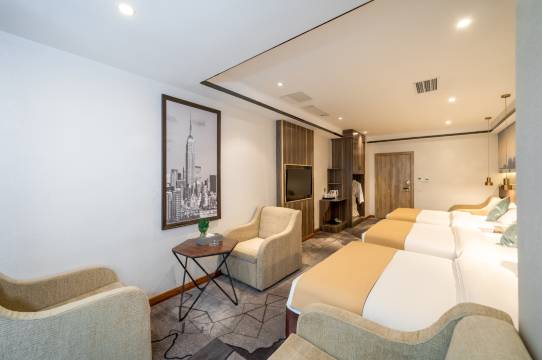 周末带着孩子在公园玩,没有住酒店的计划,孩子们都玩累了,吃完饭就不想走了,这里面酒店太多,看得眼花,找个评分高点,避避坑,我要先看了房间,前台的美女服务态度很好,带我看房间的过程中说了他们家有的服务,全程都是笑盈盈的,因为我带了孩子安全方面特别考虑,前台给我说到酒店的安保等,确实很安全,房间空间很大,孩子比较皮,房间小的话很压抑,孩子们有活动不开,这几个地方我觉得都也不加分,非常满意,觉得他们家设施也很齐全,可以洗衣服,还有健身房可以跑步,虽然没有用,但是觉得赚了哈哈哈哈哈,前台美女很漂亮,小朋友们很喜欢他们,下次还有机会住酒店一定再选择他们家
