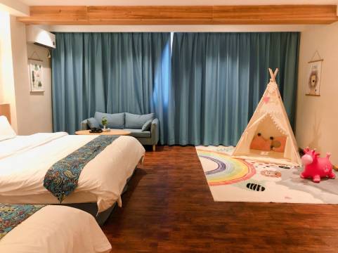 设计感满满的一家民宿,大堂有各种可以喝茶的茶桌,房间很大,卫生也还不错,订了一间豪华单人房和一间亲子房,我们带小孩住亲子房,有帐篷和滑滑梯,小孩玩得可开心了。老板娘很热情亲切,第二天为了去阴那山看樱花不排队不塞车早早就退房,中午下山在民宿隔壁吃完腌面还能在大堂免费歇脚喝茶,太赞了。