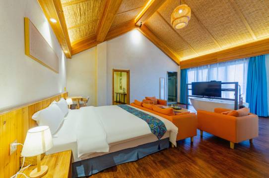房间很大,环境不错,装修风格很有情调!适合带小朋友来住。住的很舒心,玩得很开心!一楼还有图书可以借阅的,也可以在一楼喝茶。