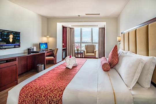 房间干净整洁!还负责接送机 酒店管理人员还有前台都特别热情,走的时候还给我说常来海南玩 以后再来海口还会定这个酒店的