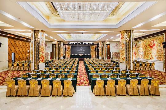 海口宝发胜意酒店位于中国•海南省•海口市龙华区国贸玉沙路,省会中心黄金地段,地理位置优越,座拥海口国贸CBD,靠近海南岛城市中心花园——三园合一(万绿园、滨海公园、世纪公园):步行即可抵达万绿园,感受天然大氧吧、欣赏热带植被、体验休闲运动锻炼。酒店秉承“精致服务,客户至上”的核心价值观,以独特的经营理念和企业文化为基石。我们致力于创造一个宾至如归、舒适惬意的氛围,通过真诚、细致的服务让每一位客人感受到宾至如归的温馨感。酒店地处商务、休闲、娱乐中心,周边拥有海口各大品牌夜店、KTV、影音设备一流的I-MAX影院、步行即可抵达友谊国贸城餐饮购物中心、华润万象城高端商超、国贸大润发大型连锁超市,有友谊阳光城、上邦百汇城等大型商超距离酒店较近,精彩都市生活近在咫尺,乘TAXI15分钟即可抵达网红打卡地骑楼老街、云洞图书馆;25分钟即可抵达海口商旅的观海点西秀海滩和最后一个景点琼台书院。酒店集成高端商务写字楼、高档客房、特色餐饮、专业会议、宴会厅为一体,A区三十三层,B区裙楼六层,设三个B1F地下停车场,一个地上露天停车场,酒店B区五楼为中餐厅酒家、酒店A区九楼为幸福西餐厅。选择我们的酒店,您将享受到独特的服务体验。我们以高品质的设施、贴心的员工服务和周到的细节管理为您创造出色的入住体验。无论您是商务旅行者还是休闲度假者,酒店都将竭诚为您提供宾至如归的服务,让您在每一次入住中都感受到“幸福”满满!“胜意”满满!期待您的莅临品鉴!