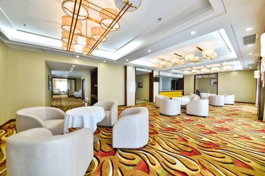酒店设有可供1000余人进餐的豪华气派宴会大厅、豪华贵宾宴会厅、包厢、西餐厅,以及会议中心,是奢华婚宴喜庆、商务、会议和各种活动的理想场所。