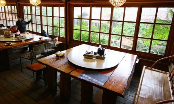 车行不久在绕过路旁大石后即可回转入浓密芭蕉叶掩映下的小径,忽见以竹材、茅草搭建的门户,大红灯笼高高挂,却似早期的台湾农家;更宛若陶渊明笔下的的桃花村豁然映入眼前。