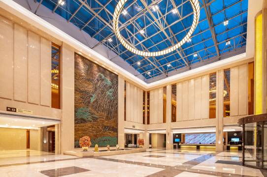 客房干净到细节,推门就见床单平整无污渍,地毯踩上去松软没灰尘,卫生间干湿分离,洗漱台、镜子和马桶都擦得锃亮,连一次性用品都摆放得整整齐齐,住得特别安心。前厅服务超专业,前台办理入住速度快,主动升级了房间;大堂小杨帮忙把送到房间还详细介绍了客房设施和周边游玩路线,有问必答态度亲切。交通位置绝了,离地铁口步行五分钟就可到,去景区和商圈都顺路,门口就是公交站,打车也方便,不管是自驾还是公共交通都便捷。酒店气派有面子,大门前的喷泉很有设计感,大堂挑高大气,进门的峨眉山画让人印象深刻,不管是商务出行还是家庭旅游,这家酒店都能满足需求,下次来还选这里!
