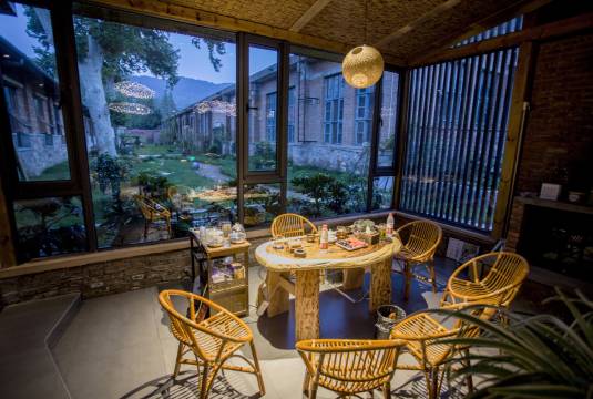 民宿位于襄城盛丰路603文创园内,配备室内茶室。旁边是特色美味餐厅及啤酒吧,高端健身房和陶艺馆,距离岘山文化广场,阳春门公园步行10分钟,离唐城,北街,夫人城均很方便。她带着清雅的中式复古风,中式元素与现代材质巧妙融合,室内全实木家居,天丝棉床品皆采用专业酒店标准,柔软,舒适,典雅,敞亮。套间内另配有精美茶具,酒杯,星空浴室间,风情庭院间。 或两三相约,或一人独享,这人间十二月,我们与您慢享时光。