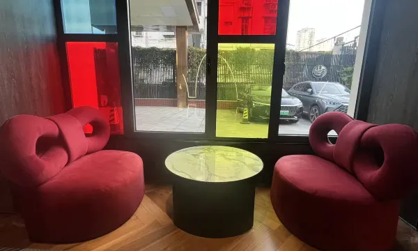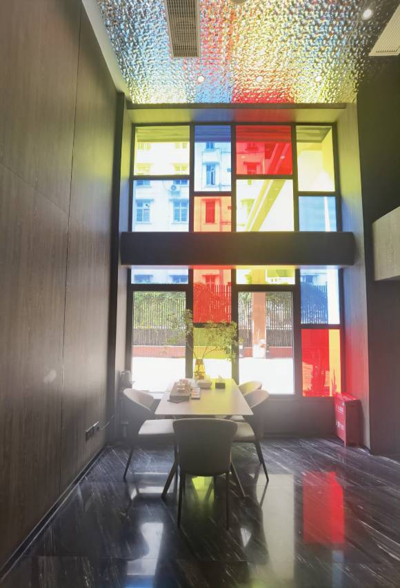 房间干净整洁,装修风格是高饱和度大色块,感觉很新潮