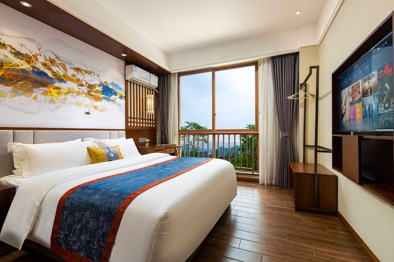 酒店停车方便 离古镇近 空气很清新 房间很干净 服务好 前台小姐姐很热情很有耐心服务很好提出的问题及时解决 房间采光很好 床很软很舒适 有独立的冰箱洗衣机