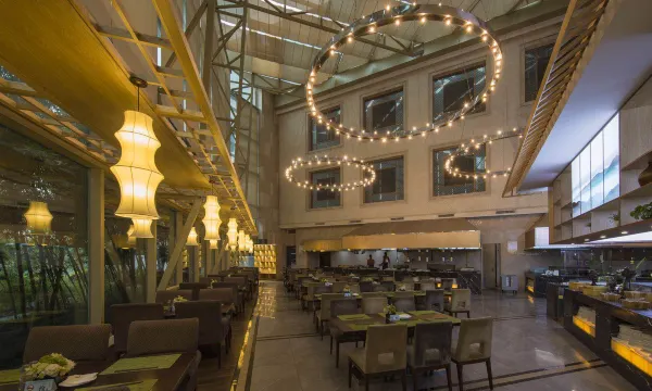 酒店拥有中西餐位1700座:极具当地特色的中餐厅,带来舌尖上的美食风味。风靡诸暨美食圈的“网红”西餐厅,诸暨每20人就有1人前往打卡,原投资1000万,现仅餐台改造150万,167种食品,带来全新用餐体验。