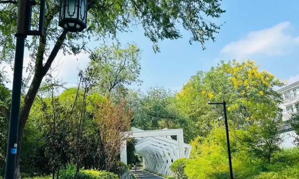 餐后还能沿着林荫道在上塘河畔散散步。