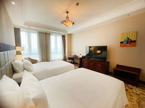 酒店给我的第一印象就是豪华大气上档次,走进大厅就有欢迎声,前台小哥特别热情,细心,大堂中间还有一颗黄水晶树,很好看。房间很干净,装修很温馨,基本需要什么服务员都会送来。晚上周边吃的很多,还有市集去逛了一下。交通也很便利。下次来这里还会选择这家酒店。