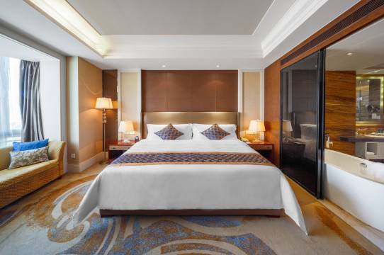 订得三秒随心房,很宽敞,卫浴间宽敞,热水快且大,很舒服。窗外景观也不错,26楼旋宫早餐很丰盛,有很多当地特色美食,稍麦,羊杂汤,奶茶,贝子,牛肉馅饼,奶嚼口等等。服务也很贴心,每天有新鲜水果和巧克力,和夜床服务送上,从外旅游回来有宾至如归的感觉。