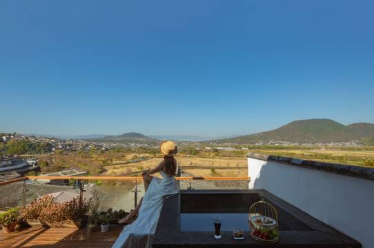 这是一家远离城市喧嚣却不乏精致品味的民宿,主题风格以巴厘岛风情为主,涵盖功能度假、温泉、会议、影吧、酒窖、泳池、多功能为一体。在这里,你除了能体验到高星级酒店的床品配备,还能感受到和顺古镇的静谧,饱览群山美景。