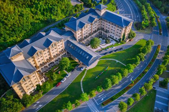 酒店位于中国竹乡安吉,地处繁茂的林海和如画的山川间,与欧式梦幻的银润锦江城堡酒店隔街相望,与Hello Kitty主题乐园毗邻而居。
