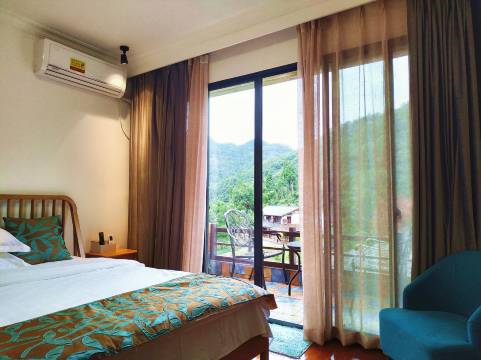 坐在阳台上,手捧一杯老板娘亲手制作的毛峰茶。一本书,一碟花生。周围山峦叠嶂,云雾缭绕,俨然一幅山水画。就这样消磨一个下午,很惬意!