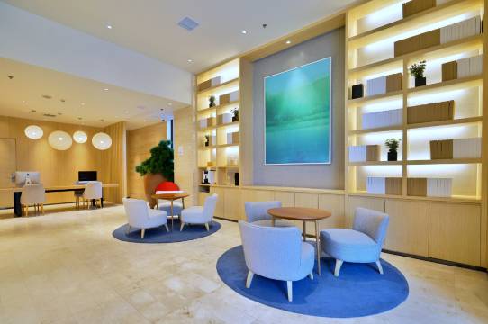 酒店现代中性风与朴•适生活理念的交融,新生出“亲空间”的概念;空间中随手可触的竹、松、木及大面积留白,为穿梭于纷繁城市狭隙中的旅人铺展开一方悠然静土。房间的布局上充分体现了现代实用主义,简敛的线条,框架的延伸,让顾客回归到最真实的体验,亲切而舒适。