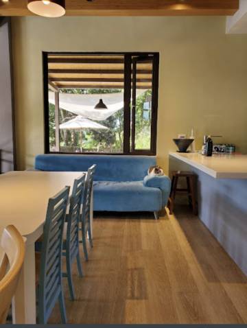 房间宽敞明亮,设施简单方便使用,房间卫生干净,环境有自己的室内室外庭园,可以休息聊天,周围大环境接近大自然。意外收获,傍晚看到候鸟(老鹰)在空中飞翔。服务贴心,宠物友善。