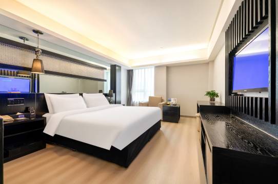 房间很宽敞,床品舒服,很干净,打扫房间的阿姨很热情,本来昨晚应酬了,跟前台小姐姐说了一声延迟退房一小时,很客气。厕所干湿分离,有暖气好像,挺热的。