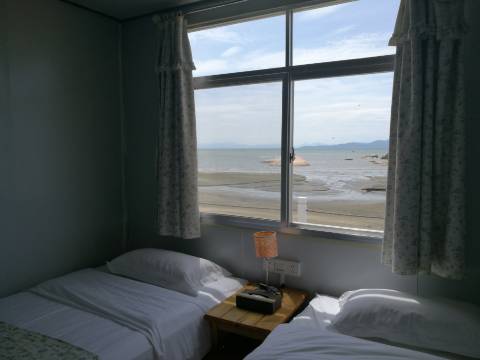 住多次了,环境不错,海滩边上。推窗见海,出门戏水;浪缓沙细,风清月明。室内略有点旧,但挺干净,设施齐备,可以接受。周边食饭的地方很多,几百米外过了那琴桥有士多、水果、早餐店。也可以到17公里外的东平水产品批发市场买海鲜加工。总体来说挺不错的