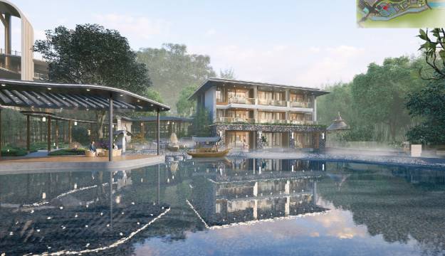 梅兰谷梅兰苑依山傍水,东有兰亭,西有兰池、墨池,北有兰园、兰酒坊,南有兰谷,中为精致的中式风格兰苑和木屋别墅建筑群,构成小桥、流水、人家的优美意境。融入梅、兰、竹、菊、茶、山、水、田、林石主题元素,传统文化气息浓厚,让您感受晨沐朝霞、夜观星斗的静谧之感。是三五知己聚会、家庭式亲友度假或商务洽谈的好去处,让您工作之余,远离城市的喧嚣,感受自然的惬意时光。