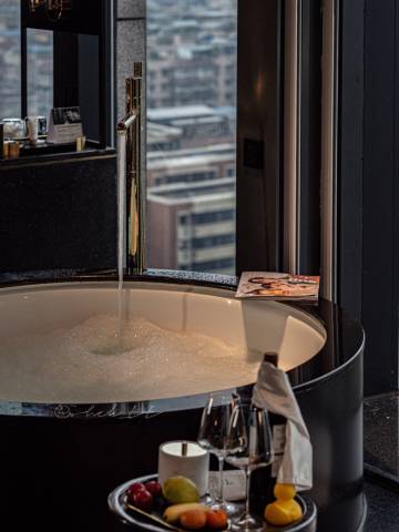 房间以红黑为主调,高级又有格调,随手一拍都是时尚大片。超大的圆形浴缸正对大床,泡在水里就能看大屏投影,配上Bose音响,氛围感直接拉满。地理位置绝了,步行到太古里几分钟,闹中取静,逛吃超方便。这不仅仅是一家酒店,更像是一个可以住的艺术空间。无论是情侣约会还是闺蜜出游,都能在这里找到专属的浪漫与松弛感。已经列入我的成都必住清单,下次来还住这儿!