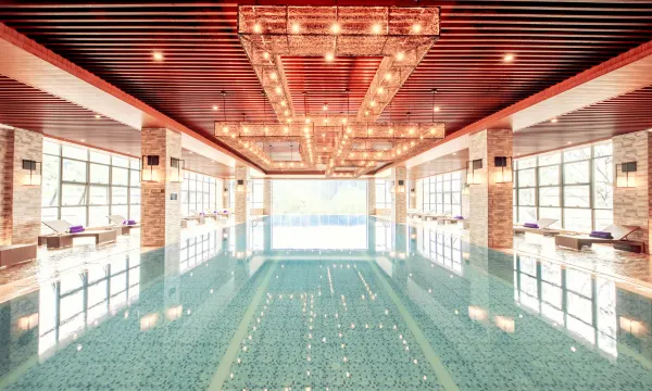 本店位于神农架林区龙降坪国际生态旅游度假区核心位置,坐落于苍翠树木掩映的龙降坪,恍如置身世外桃源,远离了都市的喧嚣,宁静悠远的感受令人神往,依山傍水,是三面环山,三水环绕,三龙汇聚之龙降福地。酒店距离神农架旅游集散中心木鱼镇约车程9分钟。龙降坪国际度假区依山就势布局,集山地运动滑雪区、国际养生区、旅游度假区、避暑养老区四大主题功能区,两大峡谷生态公园于一体的高端旅游度假胜地。酒店是荣盛康旅集团旗下自有酒店品牌,以“欢乐世界、精彩生活”为理念,实现世外桃源般的度假梦想。酒店内另有德胜堂四合别院,别院内设各式房型客房,配备会客厅,健身房(跑步机),棋牌室,私人影院等设施,静享私密自在空间。酒店设有汇集神农架本地特色并融合各地美食风味的中西餐厅,美食供应尽享舌尖上的神农架;无边际恒温泳池(为了更好服务宾客,泳池分季节开放)和龙降坪星光国际滑雪场让您流连忘返。这里另设置有免费儿童乐园、免费森吧休憩、免费网红观云露台打卡、免费羽毛球场、免费健身房、免费书吧、有偿棋牌室、有偿KTV、有偿台球室、私人定制酒吧等全年龄层康体娱乐设施。酒店拥有完善的各类会议设施,拥有可容纳600余位宾客的多功能宴会厅,是高端会议与中西宴会的理想场所。