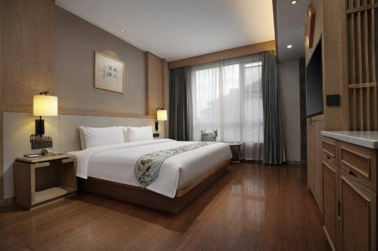 酒店将“茶”元素融入到了每个细节,从大堂的茶香到房间的茶具,处处见用心。环境清幽,开窗见竹海,心旷神怡。服务人员态度亲切,有求必应,因为续住酒店,节假日价格涨价,友好沟通后也完美解决,再次感谢前台小姐姐和店长的超好服务!推荐给姐妹们安利!服务绝对是五星级的!从前台入住到餐厅服务,工作人员都面带微笑,非常贴心。其次还推荐了本地好吃的烧烤和干挑面,石锅鱼,本地菜系,对于我这种选择困难症的非常友好!位置也是离各个游玩景点较近,楼下对面就是一条美食街,但是睡觉隔音非常好,听不到一点声音,本人睡觉稍微有点动静都不行,这点非常值得点赞!这次入住给了我太多惊喜,真的值得本人好好夸一夸!姐妹们真的无脑推!!!