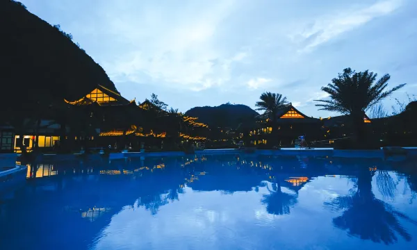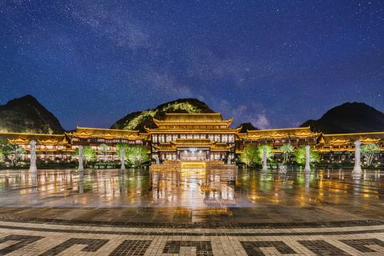 织金饭店坐落于平远古镇东部,背靠穿洞流云主峰,面向三潭滚月景区,居高临远,俯瞰平远古镇。