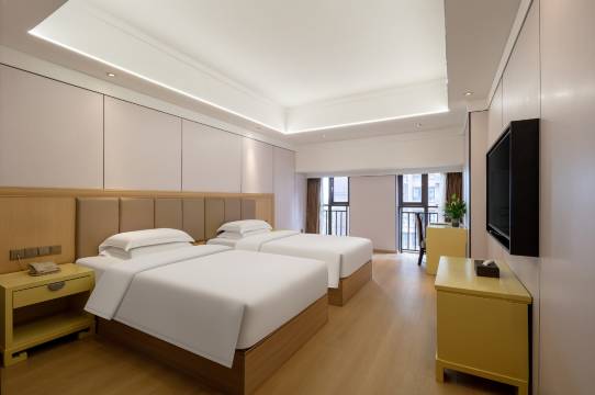 💯强烈推荐这家酒店!位置真的太绝了,离地铁站、高铁站都很近,出门就是有轨电车和公交站,交通超级便利。前台的服务也特别好,小姐姐热情又贴心。房间设施很齐全,空间宽敞,光线也很充足,住起来特别舒服。卫浴也很干净整洁。从房间窗户望出去,还能看到车水马龙的街景,氛围感拉满~楼下广场吃的选择超多,完全不用担心吃饭问题。下次来还住这儿!