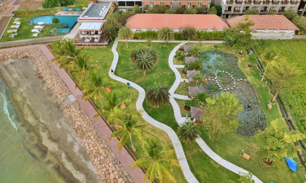 酒店占地很大,有很大的草坪,面对海滩的秋千和泳池,还有荷花池,甚至是………一片稻田。设施非常有惊喜!