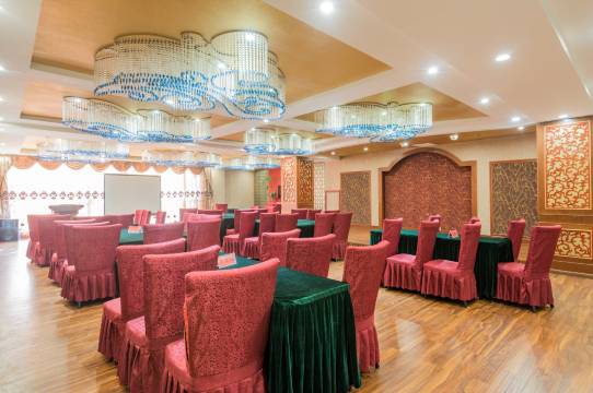酒店多功能会议室,配备智能系统、音响系统、投影等多项会议设备,可容纳150人。是举办各类庆典、党政会议、商务会议、酒会、新闻发布会、讲座、演示会、团拜会等的上佳场所。专业的会务顾问、宴会策划和服务,为会议全程跟踪。