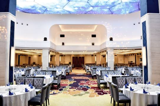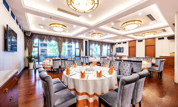 酒店内设酒楼、800平方米的就餐大厅及13间特色包房,特聘名厨料理川、粤名菜,可承办婚寿筵席。酒店拥有功能齐全的会议中心、6个不同规格的会议室、贵宾厅和展示厅;多功能会议厅配置了多媒体投影仪、进口音响设备、专业舞台灯光,更有专业的会议服务团队助您成功举办各类活动。