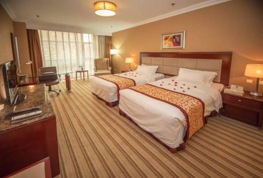 房间很宽敞,设施齐全,房间里面的床跟卫生间地板等很干净,卫生不错,环境优美,客房部跟前台服务态度挺好的,是一次不错的入住体验,下次去天津还住这里