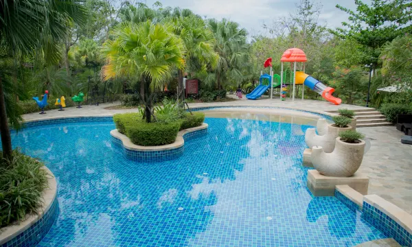 为方便出行,酒店内的电瓶车随叫随到,为带着老人、小孩出游的旅客省下不少麻烦。酒店还贴心设计了儿童游乐区域,适合五岁以下的儿童。还有深60公分的儿童戏池,供孩子嬉水玩乐。
