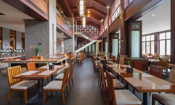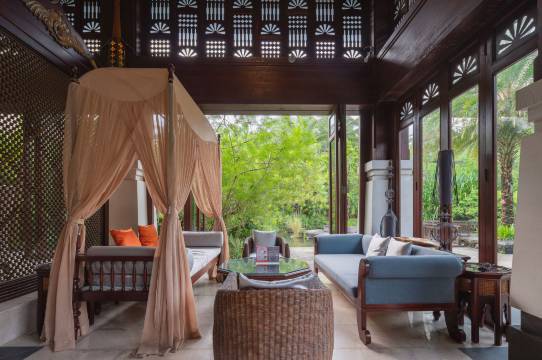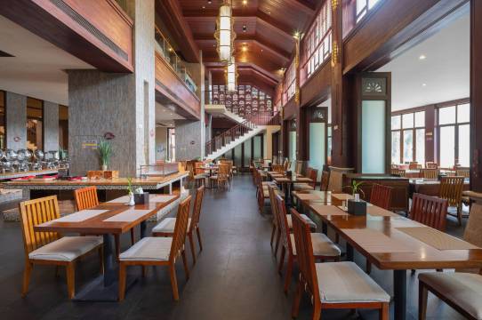 升级了房间,面朝大海,春暖花开,一眼望去满是东南亚风格,房间很安静,足不出户就能享受轻松氛围。离海边走路10分钟,离商业中心走路5分钟左右,园区很值得逛一逛,阳光下非常美,前台有接驳车,院内出行非常方便,早餐很丰富,非常推荐。