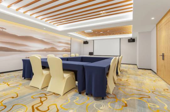 酒店,温馨时尚的家具配置为您带来舒适的体验。一楼设曼享早餐厅,可容纳60到100人同时就餐,就餐环境宁静高雅,以及一个小型会议室,可容纳60人左右的会议,酒店设备齐全。是您在忙碌一天后憩息的选择。