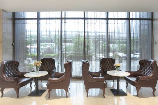 酒店外观简约大气,玻璃幕墙在阳光下熠熠生辉,颇具现代感。步入大堂,挑高的空间搭配华丽的水晶吊灯,奢华氛围扑面而来。大理石地面光洁如镜,装饰摆件精致考究,前台区域宽敞明亮,办理入住时,工作人员热情主动,快速高效地完成了手续,还贴心介绍了酒店设施及周边玩乐去处