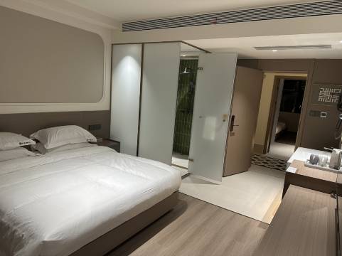 酒店环境整洁,新开的酒店空调制热很快,水温舒适,点外卖还能让机器人送到房间,工作人员服务周到 。