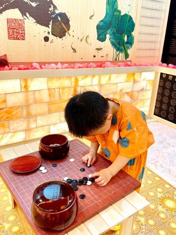 房间很大,桌边环境优雅,有山有水,紧邻奥特莱斯