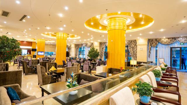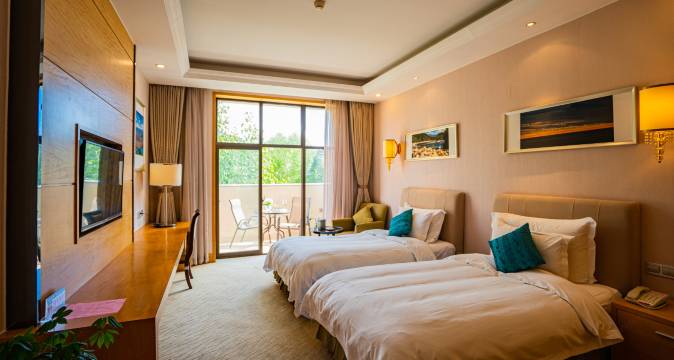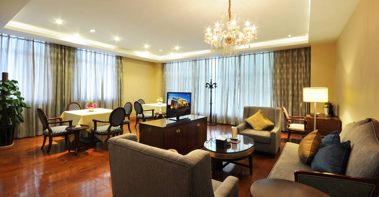 饭店集餐饮、住宿、会议,休闲娱乐为一体,建筑结合简欧与藏式风格,庄重肃穆,高端大气。院内绿树成荫、鸟语花香,环境宁静幽雅,富氧含量高。室内空间敞亮通透,房间面积在38-98平米左右,室内设施齐全,舒适温馨。独栋别墅区提供的订制中餐宴会是军队、政务、商务客人的优质之选。