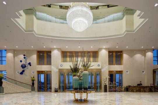 酒店简欧式建筑,环境优美、高雅、尊贵,园区内增设别致景色:珠联璧合园、欧式喷泉、清华门、等美景让您尽收眼前。酒店更是以婚庆、会议、感恩为主题的国际酒店,酒店集宴会、庆典、会议、接待、餐饮、康体、娱乐、客房、为一体,可满足不同客户的消费需求。坐落于奥体中轴线,毗邻美丽的齐烟九点华不注山,华山湿地公园。附近有著名哥特式建筑洪楼 大教堂及繁华商业街区。酒店门口即是 地铁3号线,可直达:遥墙国际机场、济南东站、奥体中心。站内换乘可直达:济南西站 。换乘公交可达:济南站(济南站北)。