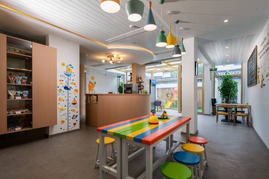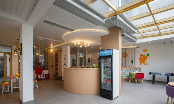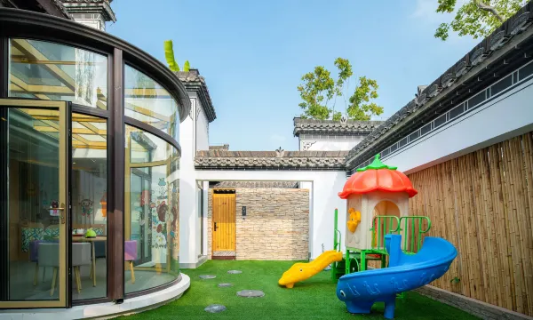民宿与集团旗下连锁品牌“己居野奢民宿”保持了一致的轻奢标准,除沿用知名床具床品、轻奢护理品牌等集团统一标准用品外,更配备了全屋软水系统。为了体现“立里”品牌的童趣特征,公共区域配备了运动游乐设施、萌宠互动体验以及手作阅读区域等多个童趣空间,房内更有惊险刺激的平台滑道、温馨舒适的超大泡池等童趣风格的“小心思”。