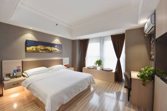 这家酒店的体验太赞了!房间装修简约大气,灰色墙面搭配艺术感十足的山脉挂画,格调满满。大床柔软舒适,白色床品干净整洁,让人一夜好眠。窗边的休闲区很有设计感,摆着小桌和蒲团,拉开窗帘就能俯瞰城市高楼景观,采光绝佳。房间卫生无可挑剔,每个角落都一尘不染。服务也很贴心,从办理入住到客房服务都很高效。无论是商务出行还是休闲旅游,这里都是绝佳选择,强烈推荐给大家!