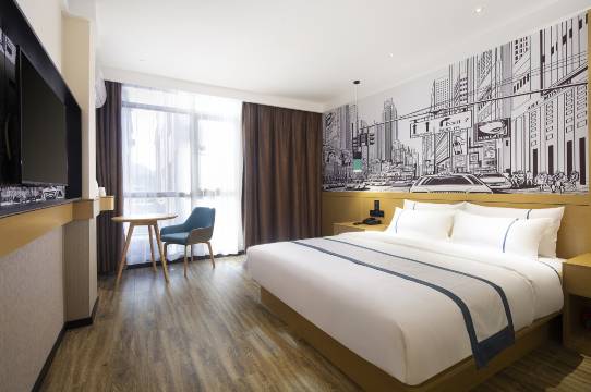 酒店不大,但好找。前台服务员小姐姐态度很好。在携程上预订了房间,小姐姐给免费升级,房间干净卫生,虽然入住时遇到一点儿小问题,但值班经理能很快处理好了,也让我们很满意。对经济型酒店我们觉得性价比比较高。所以不能拿五星级酒店的环境比经济型酒店。五星好评鼓励一下!希望更好!