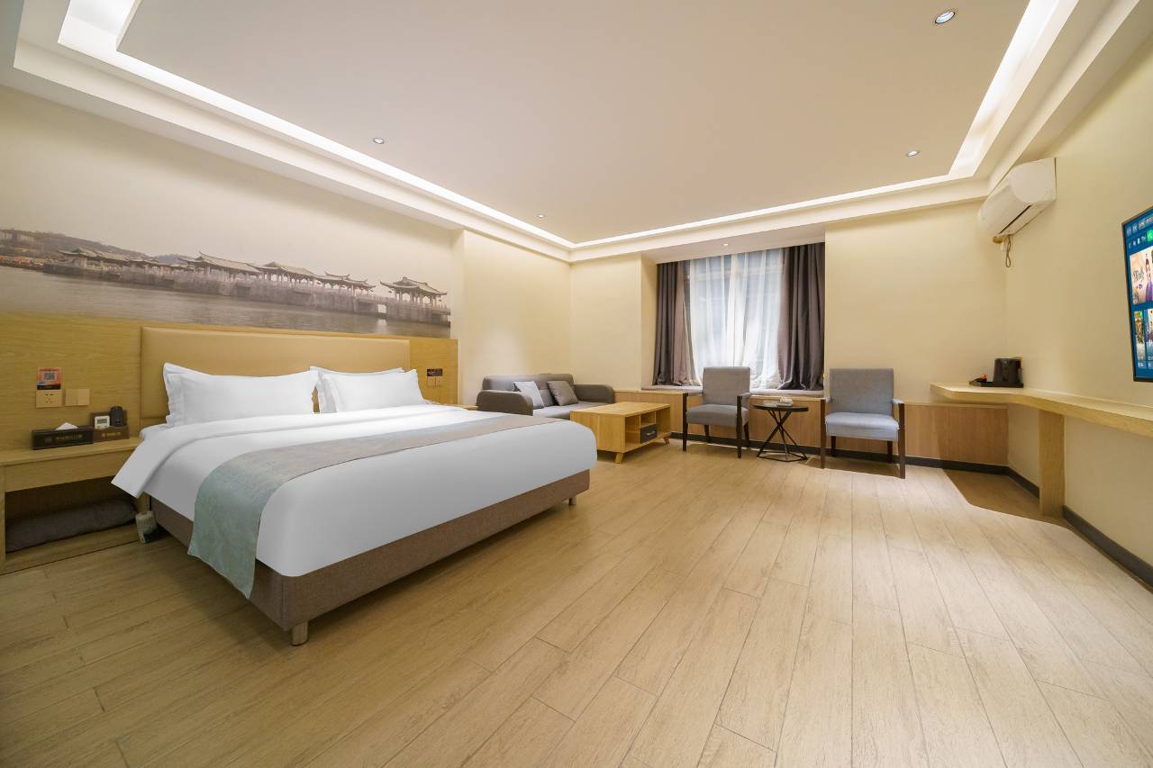 房间还算挺宽敞的,有个飘窗我挺喜欢的,厕所有干湿分离比较好,然后也有茶具可以泡茶喝,总体挺好的,价格也不贵。