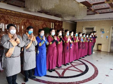 毗邻玉树博物馆、玉树格萨尔王广场,自有停车场,住宿带早餐,早餐丰富,有酥油茶。酒店五层,有电梯。周边有餐饮和超市。