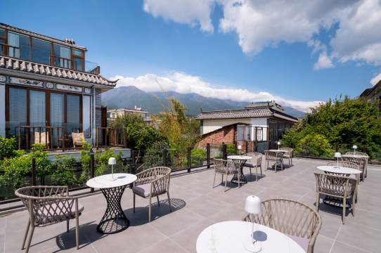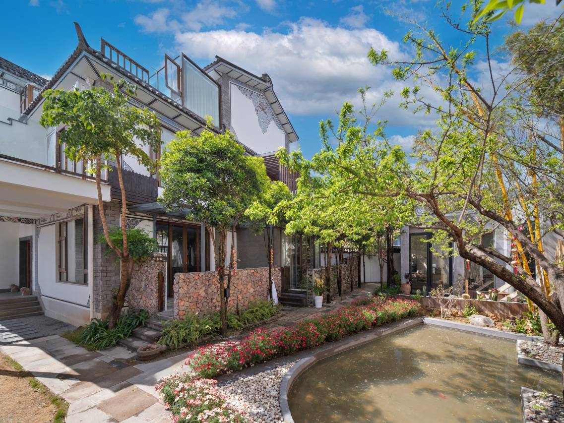 客栈坐落在苍洱之滨,一亩八分地不大的小院是由典型的白族民居改建而来,既保留了青瓦白墙的朴素静谧,却又不失温馨与烂漫。
