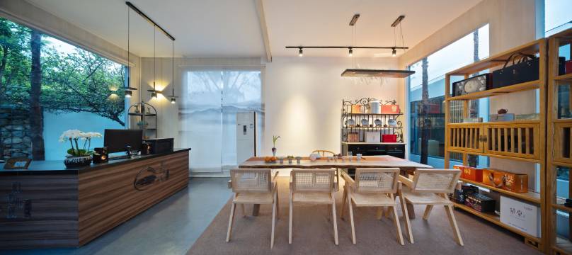 客栈有着二十多株金桂、红豆杉,静水平面映衬着春夏秋冬不同的景致,就如我们的心境一样——木木相惜,溪水长流。