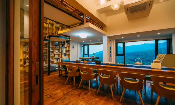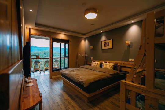 六间房,四种特色,亲子带小孩的推荐loft风格,带老人的建议双套或单套(没楼梯),主人热情,如果需要餐食和游玩景点玩法推荐尽管询问男主,他会主动推荐,也可按你需求组合建议。民宿位置不错,室内艺术氛围满满,亲子旅游,带老人逛逛山湖,部门团建(十来人)选择这个不错。天冷了,早晨不想爬山看日出的,就在前厅落地玻璃前慵懒躺着看日出(山景)也挺不错。工作日入住简直有专职管家服务的感觉(阿姨们天天上班)。