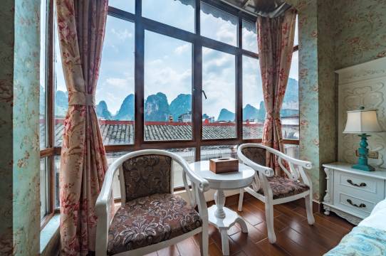 房间欧式风格很漂亮,还有个大大的落地窗,小姐妹直接在房间发呆,喜欢得很,这个价格能订到这么nice的房间,性价比超高。还有就是老板娘也超nice,专业,帮我们规划路线,订票,每个景点都好看还没有踩坑,(来之前看了攻略说很多地方很黑超怕踩坑的.....)哈哈,这次旅行超nice,下次带家人过来还住布鲁斯,再会阳朔